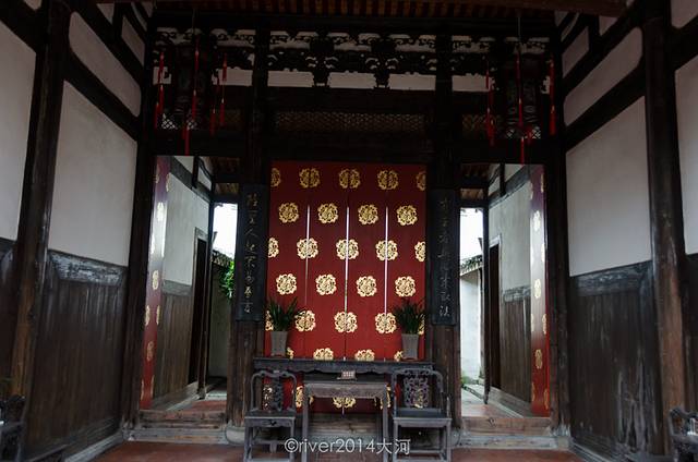 祠堂正中间挂着“进士”牌匾,显然这是诗书世家,全都是木质建筑。
