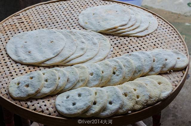 村民正在晒制薯饼,据讲解员介绍,这是用红薯制成的。