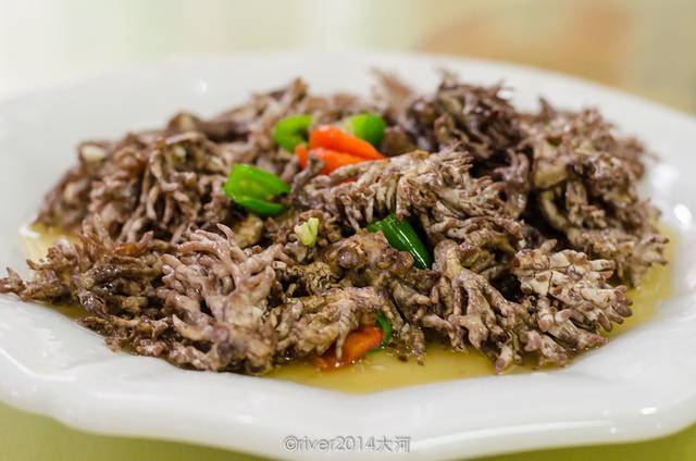 这个菜是豆腐吗?没那么简单。这是猪脑冻,据说用猪脑,鸡蛋还有其他一些材料做成,我可是没尝出来猪脑的味道。