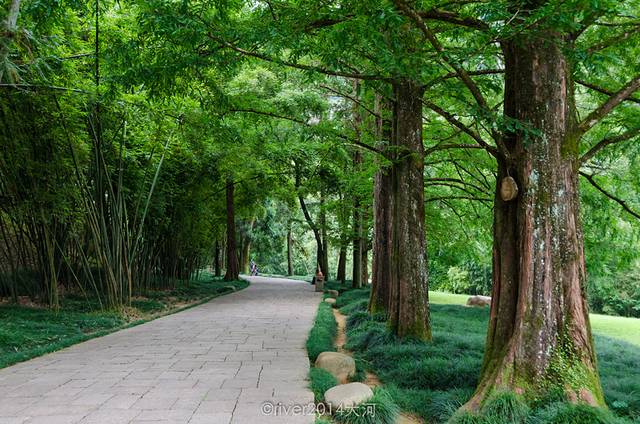 旁边则是一条河,河边的树上栖息着几百只白鹭,由于距离太远看不太清楚,一片绿色中密密麻麻的分布着许多白点。