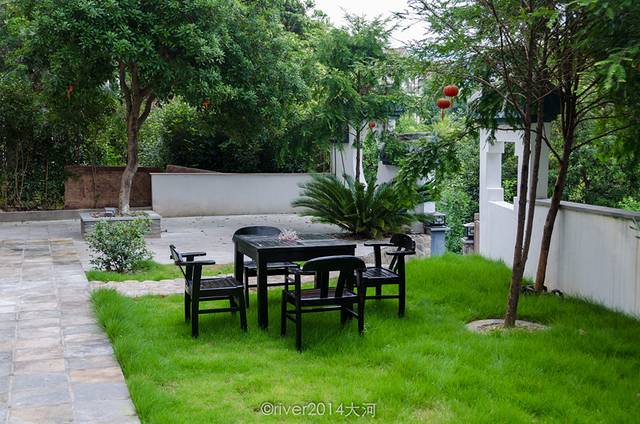 每一栋别墅前面是一条小溪,有一个专属的小院子,草坪上摆放着桌椅,可以喝茶,聊天,看书,发呆。