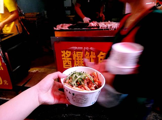 在中山路步行街晚上购物的人非常多,吃的、衣服、珠宝等等产品应有尽有,很多外地人都去那里的小店买馅饼带回去。