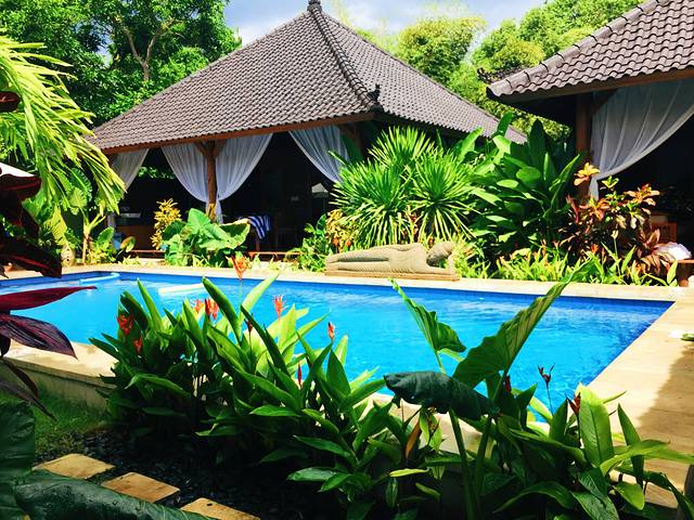 一进门就发现里面的植物真的超级密超级有感觉啊,说是酒店我觉得更像是私人公寓的感觉,服务员也是私人管家的感觉,会跟你介绍酒店的情况、蓝梦岛的情况、蓝梦岛大致的路、蓝梦岛上适合浮潜的深潜的地方啊什么的,酒店里也提供餐具厨房什么的,可以自己弄吃的,摩托车也可以直接从这里租的,还是很方便的。
