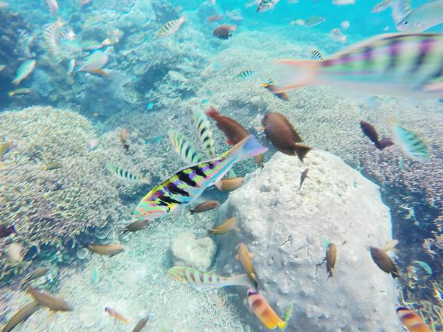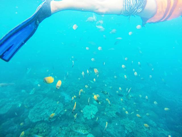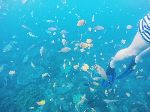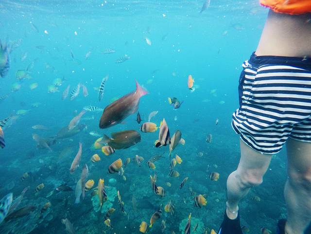 以下照片都是用gopro拍摄的。第一个点是Crystal,水最蓝,但是能见度是最差的,在这里我们浪费了太多体力和时间,建议大家把体力多留到后2个点哈。