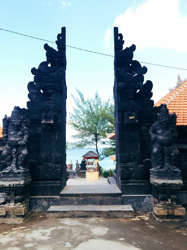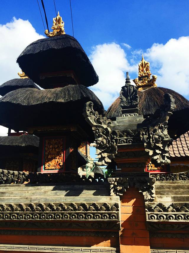 当地人叫“拜拜“,供奉的东西,他们每天拜三次——早、中、晚。里面有花、糖、香、小饼干之类的。我好几次看到路边的野狗吃里面的饼干,还看到好多蚂蚁围着这个,我就在想这是不是巴厘人回馈大自然的一种方式,让各种生命都得到延续。后来问了本地人才知道并不是故意给狗狗们吃的,那个纯属它们偷吃,哈哈哈,知道真相的我眼泪掉下来啊。