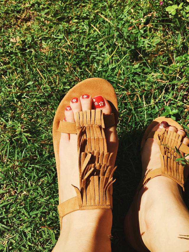 玩完上岸之后发现做的脚趾甲掉了一个,所以说运动还是挺激烈的。岸上都是本地的大妈和奶奶们,会一直缠着你做个马杀鸡啊或者画个指甲。本来我说不要不要,但是大妈坚持给我画一个,到最后都说免费给我画上那个掉了的,没办法我说那给我画一个吧,但是我付你一个的钱。然后画上了小花还挺好看,我说了一句nice,大妈就缠着我把别的趾甲也做了千万不要上当啊!其实大妈画的还是蛮好的,一只脚5美元也不贵,但是我当时就说啊,这是甲油胶不是指甲油,她说的没事I can clean it。我就放心的喝饮料和人聊天啊,再一回头发现她真的是用抠的!生生的抠了一半了,我也不好让她停手,痛是不痛,有多伤指甲女生们应该都知道。所以大家万万三思啊!这种地方随便玩玩可以的,不要希望他们卫生条件啊技术过关。