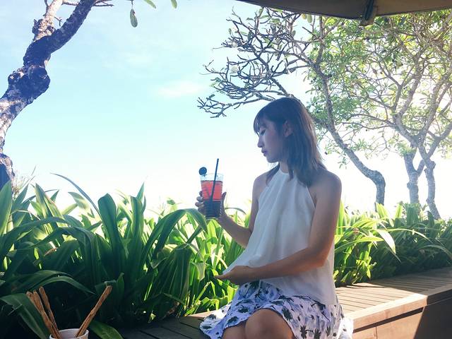 小西直接在酒店大堂接了我们,然后就开车准备走啦,司机是不会说中文的,但是也很亲切。一辆车就带我和金金2个人,感觉好高端呢。这个半天的项目是包括:宝格丽下午茶、乌鲁瓦图情人崖门票、金芭兰海滩看落日和最后的烤猪排晚餐,所以我后来的感觉是这一下午真的很值,值到我都觉得他们没什么钱赚觉得特别不好意思,所以最后给的小费比较多哈。