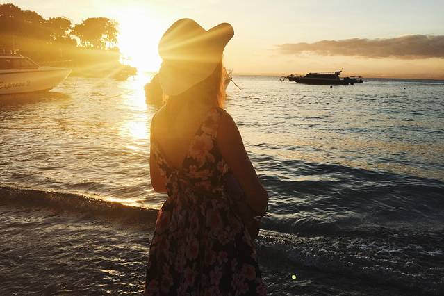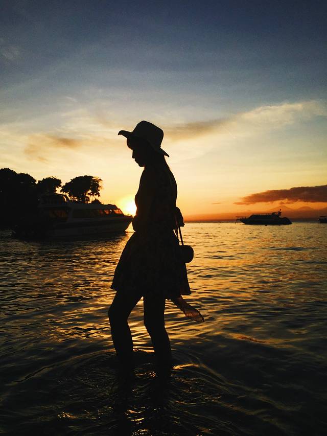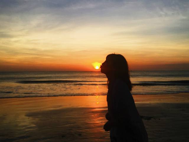 金芭兰的落日非常有名,但是个人感觉没有我在蓝梦岛看的那么美,因为当天没有什么云。我反而觉得落日最美是没在夕阳和各种剪影,可是金芭兰海滩比较开阔,没有山也没有船,也就没有剪影可谈啦。没有剪影的话只能自己凹造型做个剪影出来了哈哈哈。