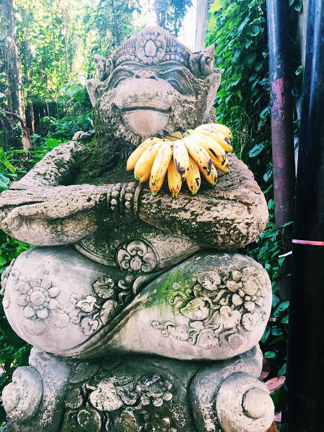 酒店稍微逛完了,准备去看猴子啦。回房间拿上了昨晚买的香蕉。提醒一下,猴林里树比较多,也比较潮湿,真的很多蚊子,在巴厘岛这么多天基本没被咬过,就这一趟在猴林被咬了好几个包,一定做好驱蚊措施哈。