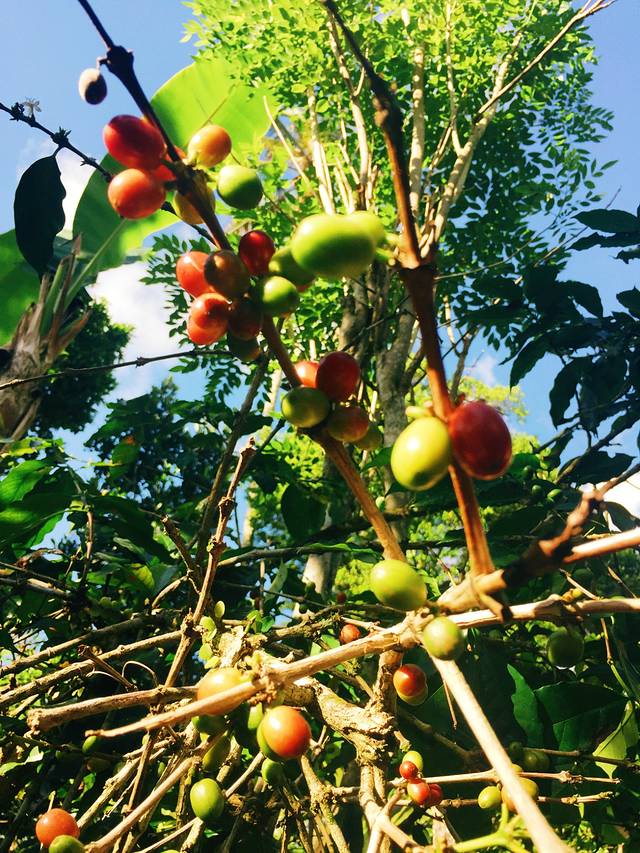 咖啡豆,红色的是已经熟了的,小哥会让你摘两个下来,一会儿可以喂给猫屎咖啡的生产者们