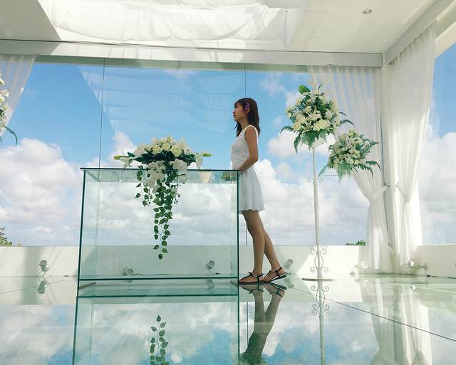 站在悬崖泳池上。下面有个日本大爷跟2个日本女生玩得特别开心特别得意,所以也没敢下去。