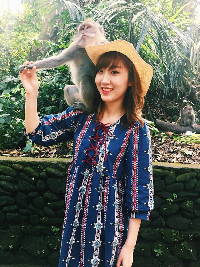 哈哈,本来还打算去乌布市场和monkey forest的,但是巴厘岛因为在赤道附近,日出和日落的时间都比较固定,6点左右天就差不多黑了,一天磨磨唧唧的就来不及去了,问了司机,他告诉我们猴林就在我们酒店的旁边,走路就5分钟,所以我们就决定直接去酒店,第二天再去自己步行去看猴子啦。