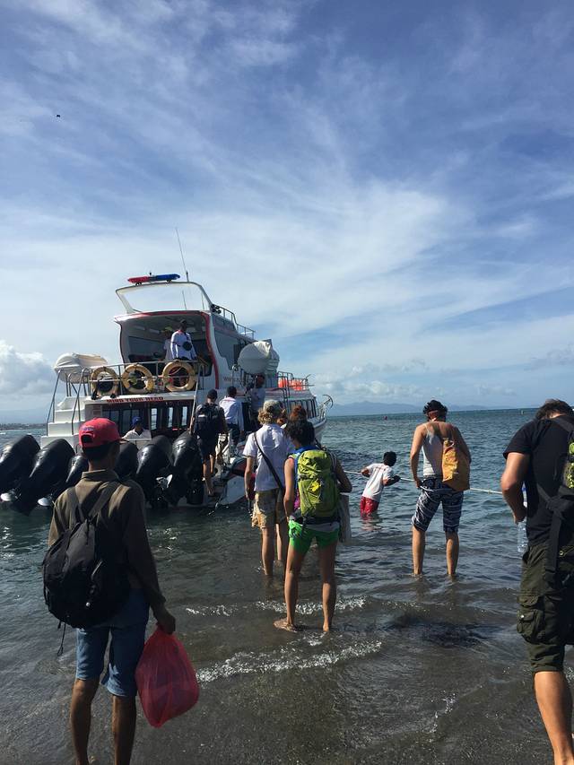 在“懒猫旅行”预定的rocky公司的下午2点的船去蓝梦岛,rocky公司的人会提供接送服务,当然住的区域不一样可能要加钱的。我们住在乌布是加了车钱的。约的12点在酒店大堂见面,但是巴厘岛很神奇的是中午是堵车时间,来晚了,搞得我有点着急以为自己错过了,赶紧给懒猫在巴厘岛的客服打电话问了,那边说联系上了在路上堵着,让我再等等。