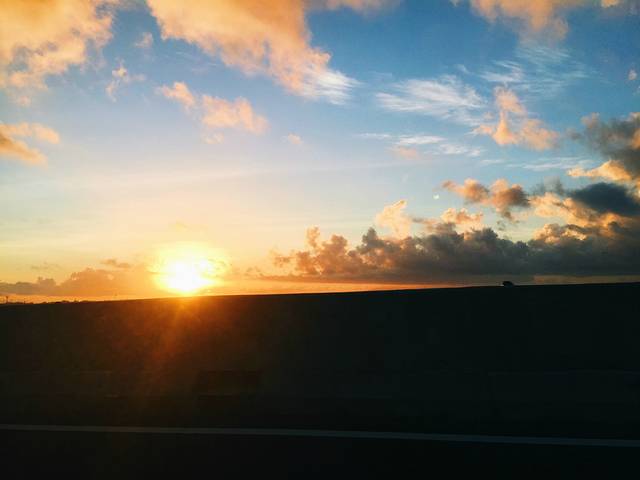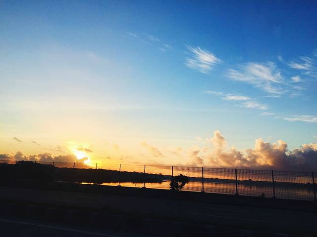 早起特别困难,6点起床,6点半到酒店大厅,坐上蓝鸟出租车准备去往约定的地点。在车上看到了很美的日出~