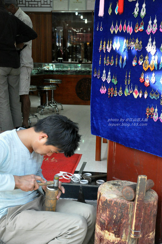 洋人街上的银器铺,一个小伙子正在加工银器