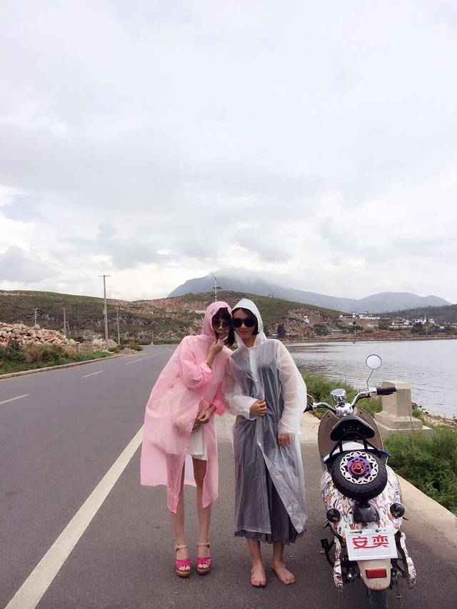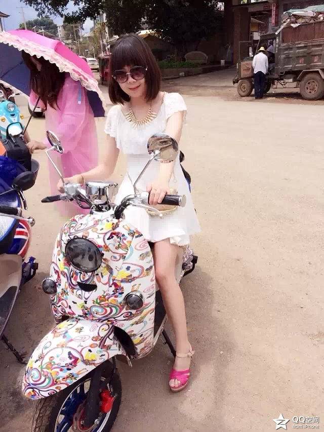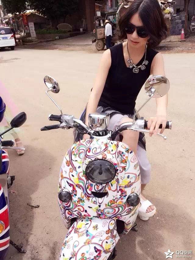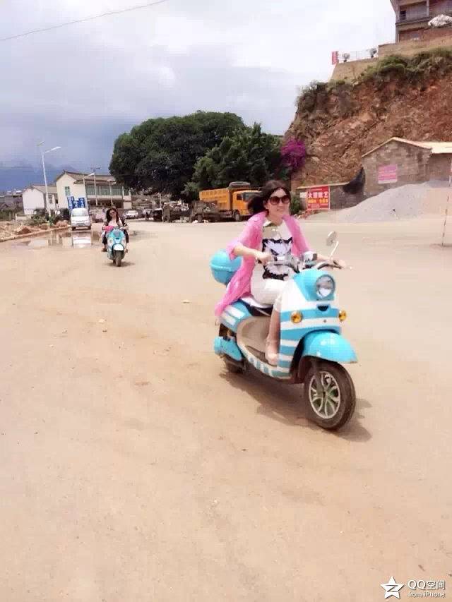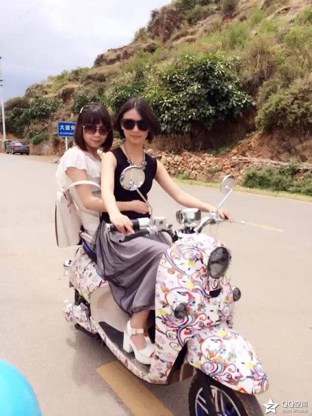 动作摆的不错( ^_^ )不错嘛~(闺蜜不会骑小电驴,哈哈)