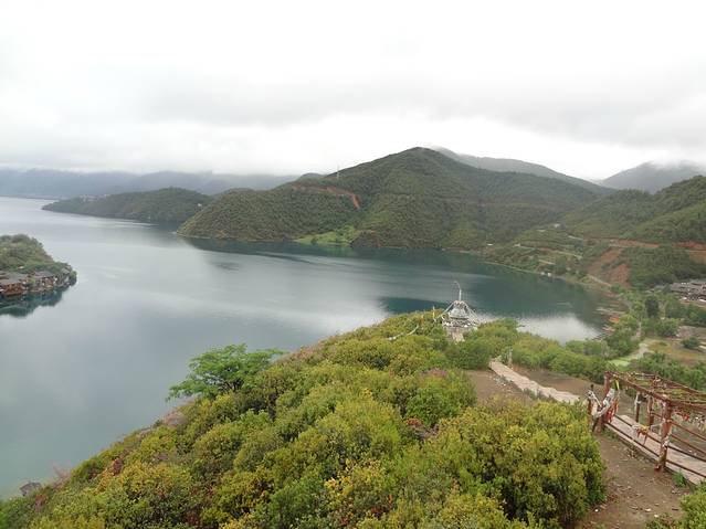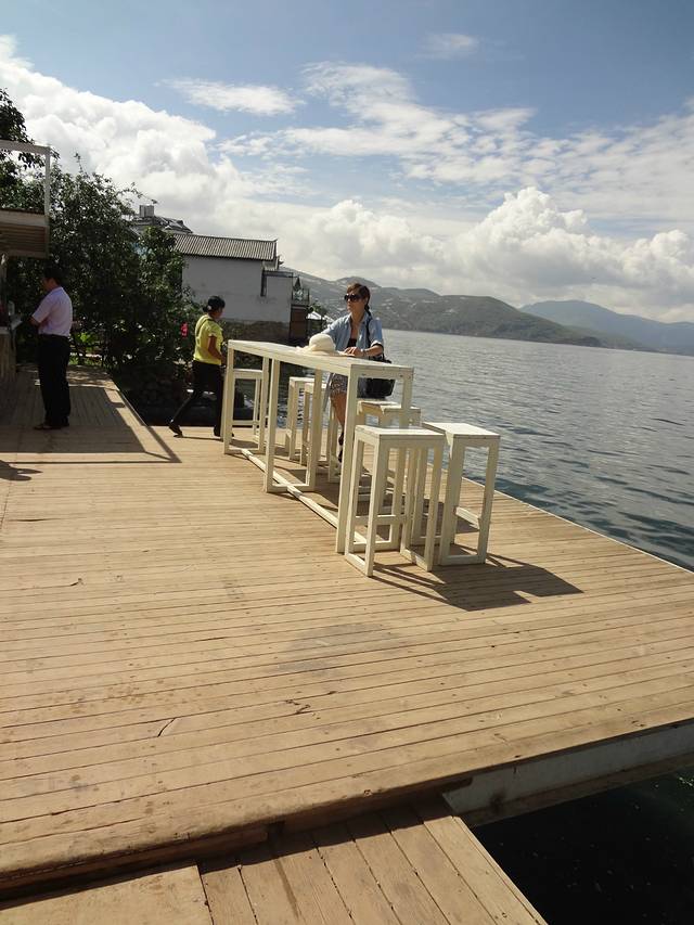 跟团的带头人“彪哥”这个名字是彪哥自己让我们叫的,他说我们叫师傅的话,他会不高兴的。嘿嘿。。。导游兼司机。。。带着我们开始游览泸沽湖的美景。两天一夜的行程安排(本计划是小落水村--篝火晚会--走婚桥-还有一个什么看台--还有划船)结果,我们去了小落水村住了一晚。晚上参加了篝火。第二天去了走婚桥,也去了那个看台拍照。最后因为有点小雨我们就没去划船,带我们去了一个说是当地的博物馆。其实很小,里面最多的就是让你买东西。我们还是买了一些。毕竟也是看在当地人很热情。还有就是去听一个义务志愿者给我们讲当地的习俗啊什么讲究之类的。这一讲好几个钟头。。。我想说:跟团很痛苦很累很不好玩。最后我们看没有下雨,要求去划船。带头人彪哥不愿意。我们说自费。他最后还是没有带我们去。有一些失望。。。