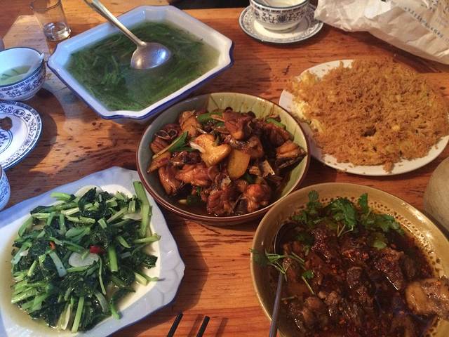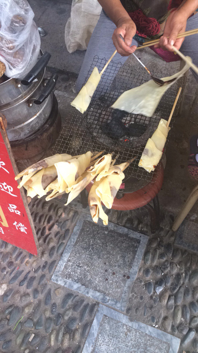 云南菜油重,不吃辣椒的,也只能吃了,因为基本每个菜都有辣椒!这里没有鸭,但是必定有🐔🐔🐔我们吃的每顿都有🐔!烤乳扇据说杨记不错,加玫瑰糖吃!再回首凉鸡米线,其实就一般,酸辣风格!反正我是让少辣了,但依旧觉得辣!还有到处可见的酸奶!非常之酸,但我觉得非常不错!