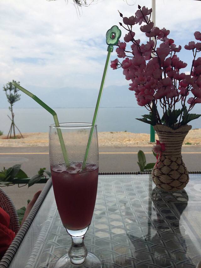 这个真不好喝!好在这景色不错!骑车骑累了,小歇一下!