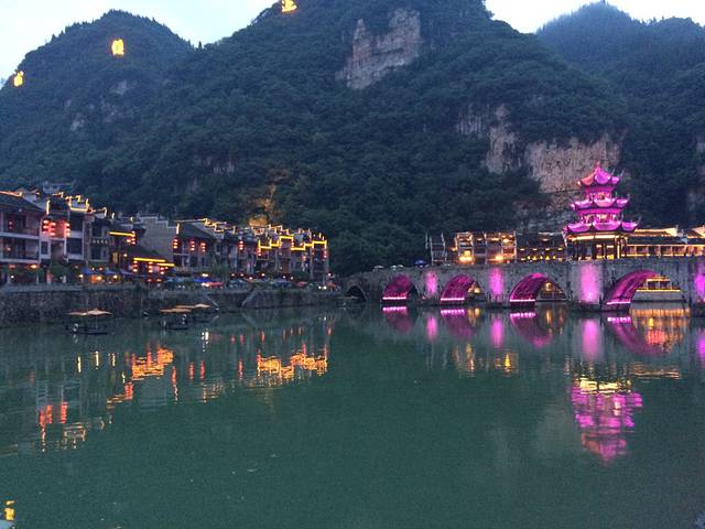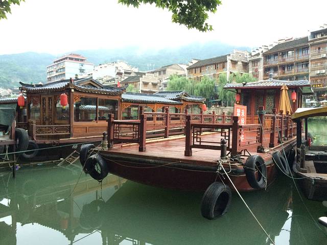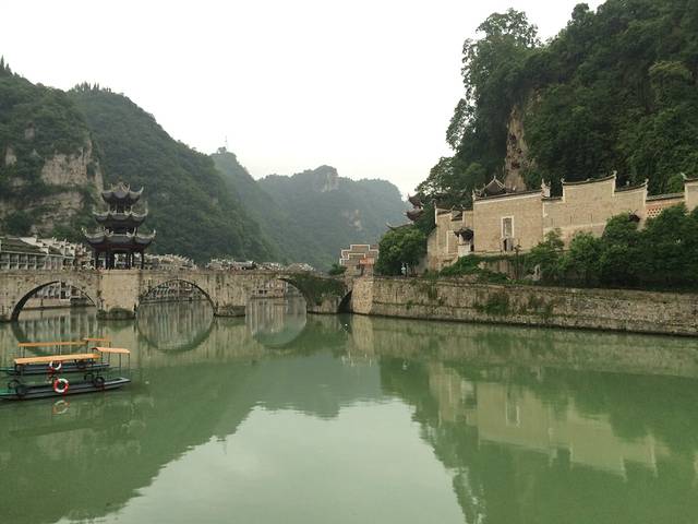 在宾馆里报的舞阳河,接送一共120,由于有老人和学生优惠10元,每个人110元搞定,但是我想说的是这个是不正规的,司机带我们去的景区大门坐的船都不是正规的。大家如果要去还是好好搜索下旅行社。当时我们就游船1小时。正常是1个半小时的。早晨八点半左右出发,中午送到酒店