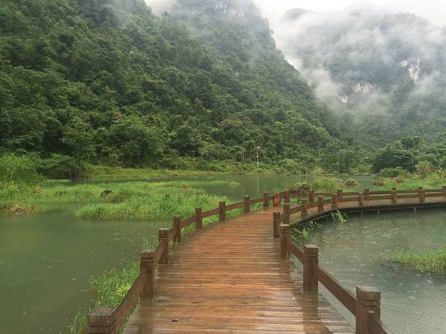 由于计划下午要坐车去凯里的,打算要早点起来去小七孔,小七孔7点多就开门了,但计划赶不上变化,下雨了,我一直在思考要不要等雨停了,后来老板娘女儿告诉我,小雨的话是不会停,建议我们按原计划出发。带上雨衣还有雨伞,我们就走路去小七孔东门了,大约500米的样子。买门票的同时要买观光车的票的。事实证明,小七孔的美并没有因为雨而让人们有所畏惧,每人都是冒雨前进。进入景区后观光车会停在小七孔桥,参观桥后一直往前走会看到68级跌水瀑布 右手边会看到拉雅瀑布。走过68级瀑布,会有观光车带你去水上森林。 水上森立出来后是翠谷瀑布 最后是 卧龙潭 。鸳鸯湖是另收费的30一个人,如果请船工是60一次。如果大家不会划船就不要去了,因为你根本进不去的。