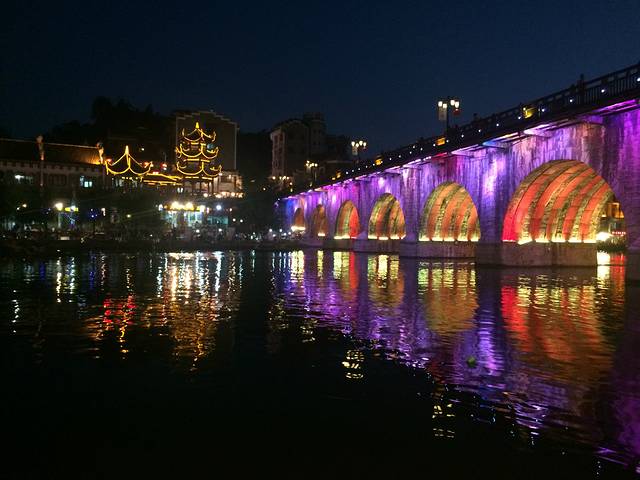 夜晚的镇远给我的感觉是惊喜,与白天的宁静完全行成鲜明的对比。酒吧里那一首首动人的歌声,河边五颜六色的灯光,还有那有着故事的各种小店,才发现原来生活在这里是幸福的,想着自己每天在城市里工作,勾心斗角,看看这里闲静的人们。顿时觉得这就是所谓的城里城外吧,城外的人想进城,城里的人要出城。无穷循环,我们羡慕他们,他们羡慕我们,其实真正值得羡慕是始终能保持做我们自己,这是我这么多年所欠缺的,确是古镇人们所拥有的宝贵财富。