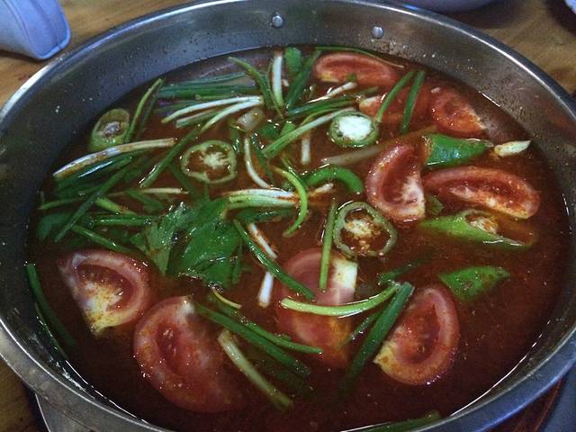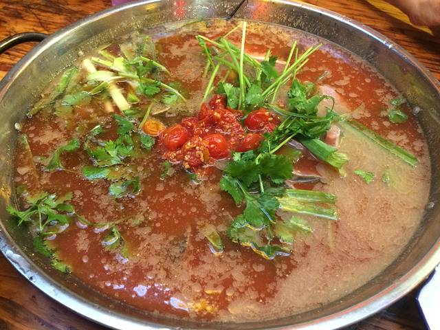 红酸锅底 点2份肉就赠送锅底 红酸比较辣