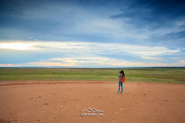 这里有辽阔的湖面,绵软的沙滩,静谧的原野,翠绿的草原,充满生机的植物,翩翩起舞的飞禽,随波逐流的小舟,喷薄欲出的朝阳,夕阳西下的霞光。虽然这里地处陕西省,但它典型的塞外风光与蒙汉两族文化相互交融的地域风情,让人流连忘返。