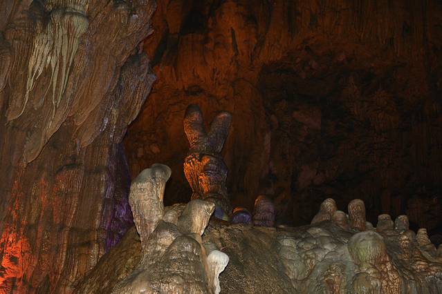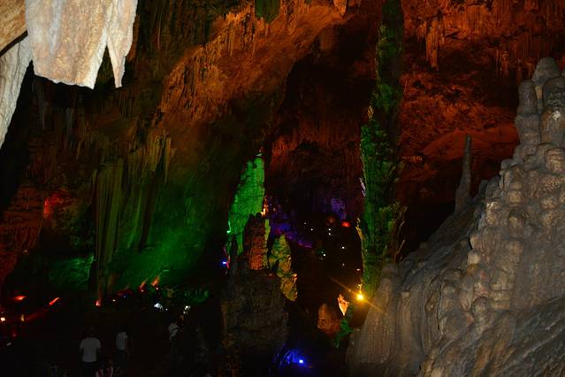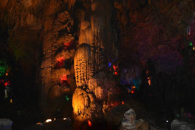 天星洞是一个溶洞,面积很大,石头各种形状千奇百怪,在各种颜色彩灯的映照下十分好看,无奈摄影技术太渣!