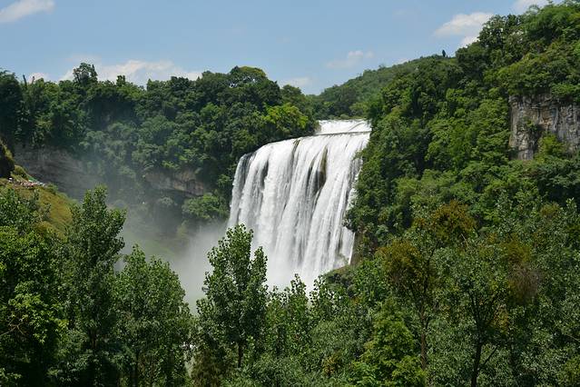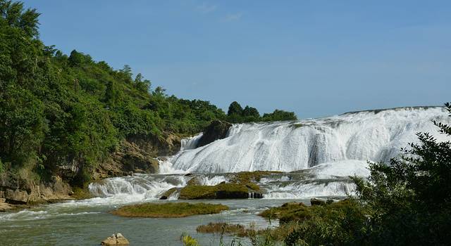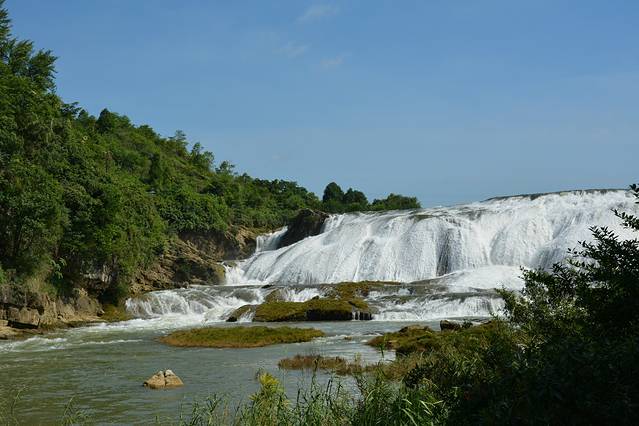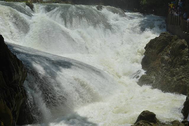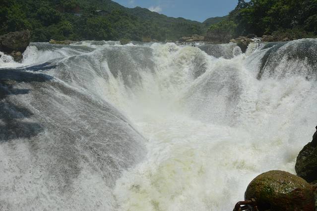 本次旅行的第一个景点,陡坡塘瀑布,说实话这是一个小瀑布,但是对于我们一直生活在平原的还在来说已经震惊了。这么大量的水,倾泻而下,十分壮观!