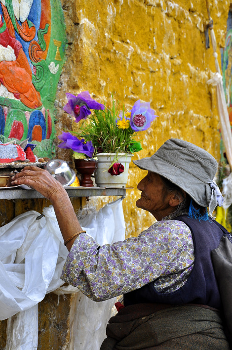 还有一个虔诚的藏族老奶奶给布宫敬香。。。