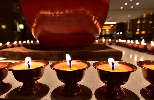 我最喜欢大堂中央红色的大果子四周跃动着的变换多姿的酥油灯,它们似乎代表着这个民族的文化、艺术、以及信仰;酥油灯24小时的点着,照亮了回家的路也给晚归的旅人指引方向!