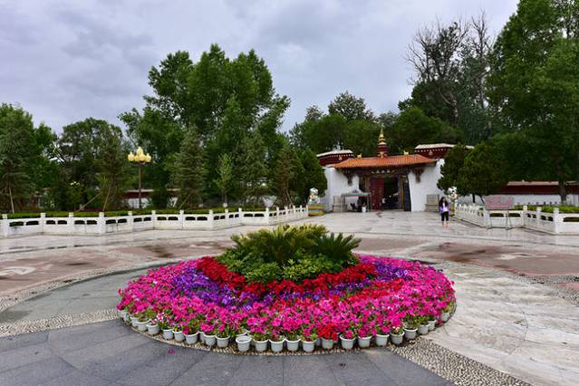 离开布达拉宫,我又骑着拉萨香格里拉酒店的自行车,来到了罗布林卡这座典型的藏式风格园林闻花香。
