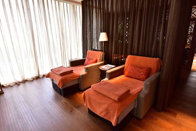 氧吧除了一个比较大的公共区域,还有这样的小隔间,用深褐色的链子隔开成相对私密的空间,所以即使高反比较严重的客人,也可以躺在里面睡个安稳觉。