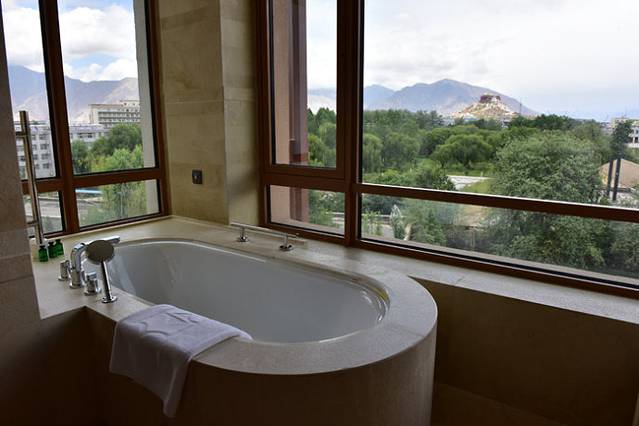 当然,这个很赞的浴室不得不提,泡在浴缸里就可以与2公里以外的布达拉宫相对而视,我醉了。