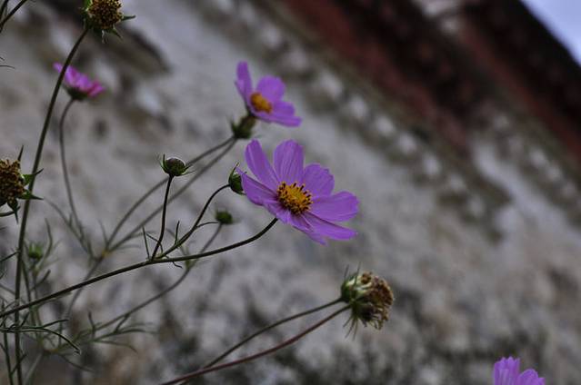 我在布宫墙角看见了这漂亮而倔强的小花,有人说这就是藏区特有的八瓣波斯菊花也叫“格桑花”,它美而不娇,喜爱高原的阳光,不畏严寒风霜,视为高原上生命力最顽强的一种野花传说这是高原上代表坚韧、顽强和幸福的小花。