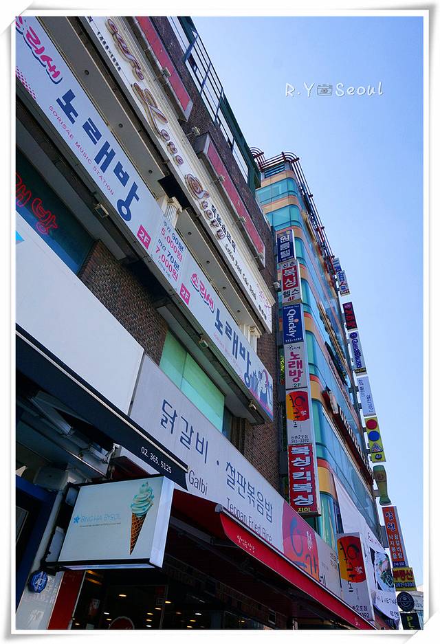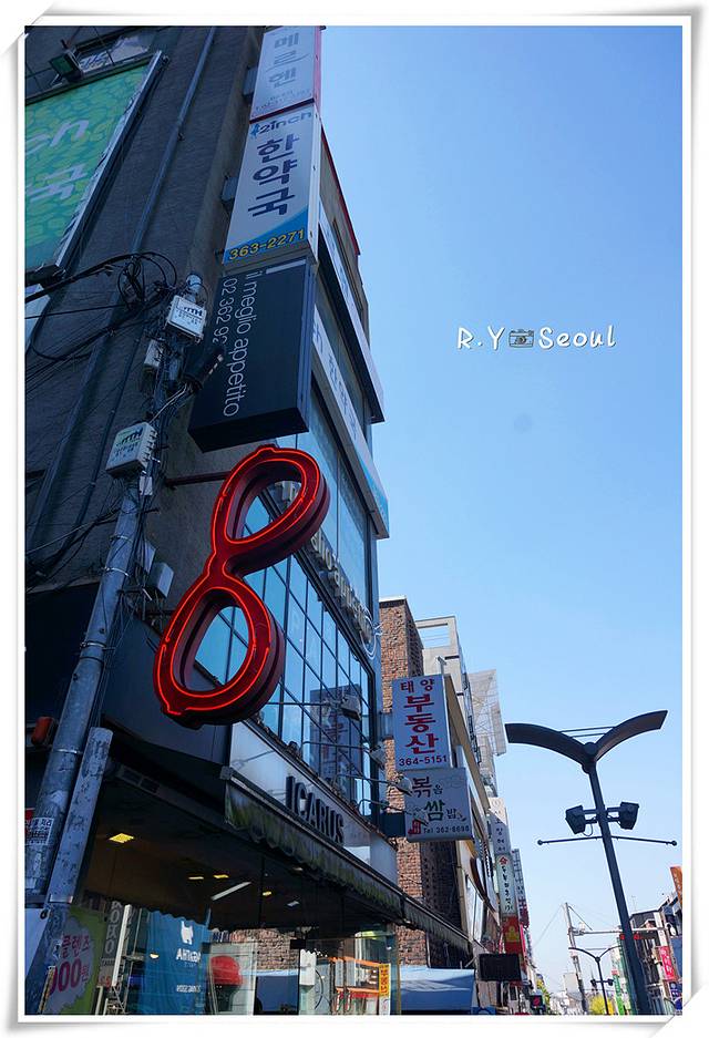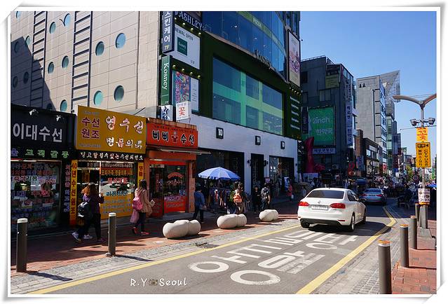 其实在梨大我们玩得很嗨,但是回头看看,有些玩耍的照片实在不适合见人……嗯,我百分之百地肯定。临近中午,我们转而踏上妩媚的梨大女人街之旅。这条小街与梨大堪称无缝衔接,出门右转,一目了然。