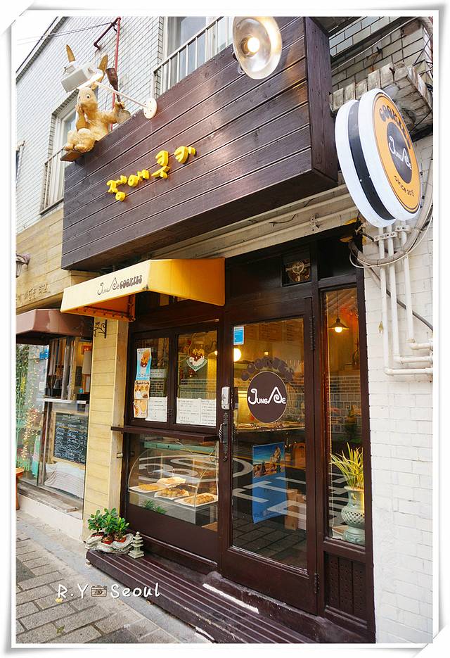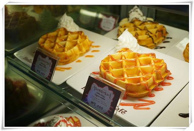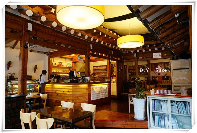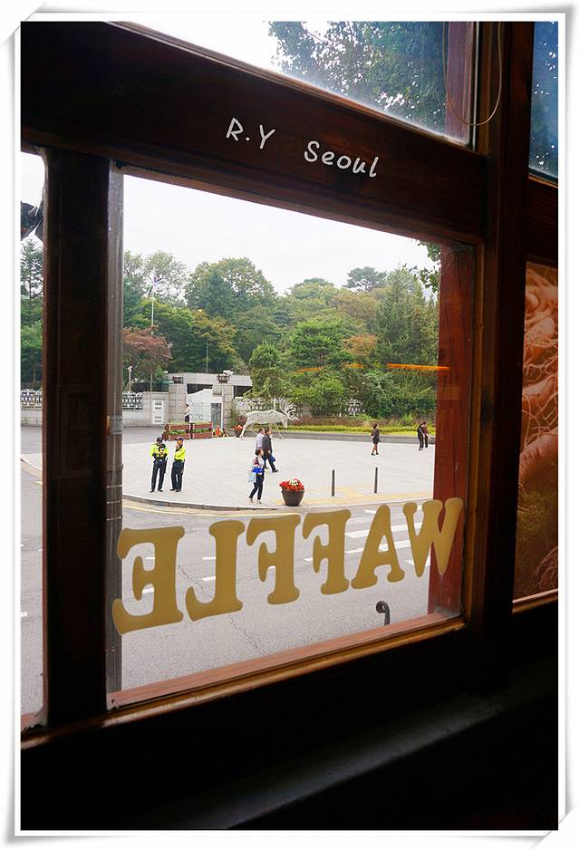 天色差再加上走得实在有点疲累,我和兔子先生随便在路边找了一家咖啡馆稍事休息。小小店铺位于二楼,店内装饰成韩国传统的建筑样式,主做松饼和咖啡,温馨舒适。接待妹纸英文很好,且长得美~矮油顺带一提,首尔的妹纸普遍美得很,抛开整容这些七七八八的根本原因,底妆不知打的什么,个个皮肤油光水滑,而且一定会用!唇!膏!真是让人气色无比好的神物啊~这也让我从到的第二天就开始卯足劲儿化妆了。妹纸们对穿搭很有自己的想法,衣着品味简直像自带时尚细胞一样,走在街上处处是赏心悦目的风景。