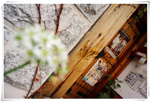 好容易雨势小了些,我们手忙脚乱往桂洞街觅食。暴走一个上午真的已经饥肠辘辘,可偏偏兔子先生不爱韩食,兜来转去好几圈,也顺便把桂洞街翻了个遍。首尔果然是个小资气息浓厚的地方,连这么一条小小街道,沿途也许多装潢别致的餐馆小店咖啡馆。只可惜雨一直下,天气不算融洽。