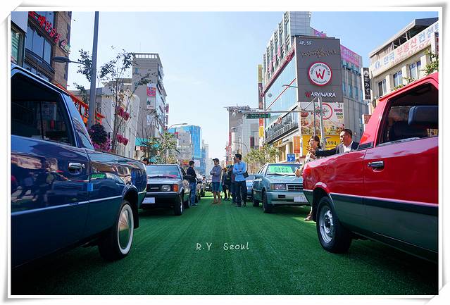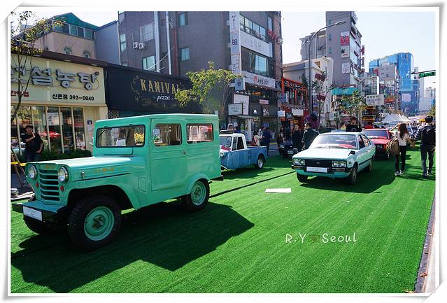 作为一名狂热的车迷,兔子先生的这次首尔之行真是运气好到爆,因为新村的这条街正在举行老爷车改装车摩托车展。看着他楚楚可怜的小眼神,我按捺下一气儿走到弘大的念想(大不了下次再去呗),潇洒地大手一挥,去吧~~于是就看见一个汉纸如小狗儿般撒欢地冲了……