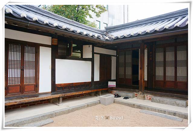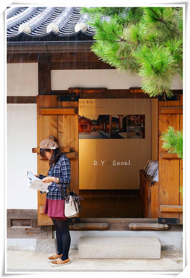 哈哈哈其实我想说的是,如果你时间充足,韩屋村的周边也别有一派好风景。直到雨点开始落下,我们狼狈闪进一家商店买下两支雨伞并遇见一只小狗后,才决定开始认真对待本来就该被认真对待的旅行。拿出手机地图一路导航,最终我们从韩屋村的边缘,艰难步行到了桂洞街附近,体验北村文化中心的韩屋内景。这个地方轻微让人有点失望,因为供体验的韩屋很小,而雨也在这里倾盆而下,彻底把我俩困住了。