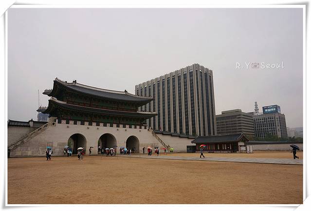 传说中的光化门,天气差极,原本准点的换班仪式也因为大雨取消。背后的大楼现代感十足,好违和啊。
