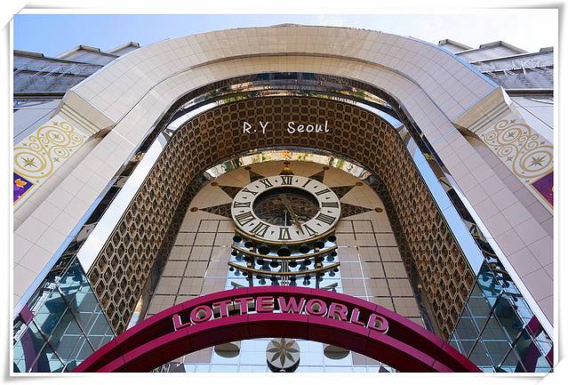 路上交通状况普通,经历了一些小堵,我们实际抵达乐天世界的时候比预计的要晚了一些些,大约是十点十分左右。当你看到这座建筑物,楼下就是乐天世界的入口啦。而周边的一大圈则是乐天免税,乐天百货,乐天酒店,乐天大厦……在韩国,乐天果然是不得了的大鳄啊。