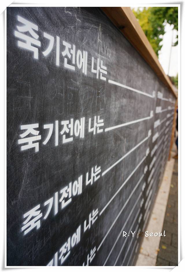 顺着巷道直走,看到这面写着各种语言的填空墙,三清洞就在眼前了。特别值得一提的是,墙上的填空问题是,你死之前会做的事是?——是否很值得想想呢。黑板上还有许多被擦去的粉笔痕迹,想必不少人在这里写下过自己的答案吧。