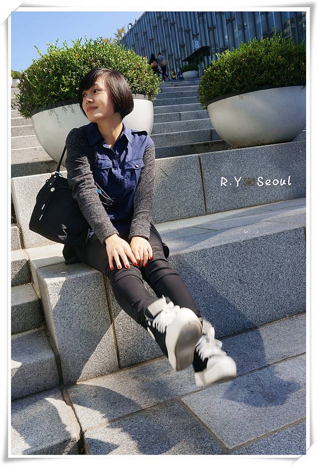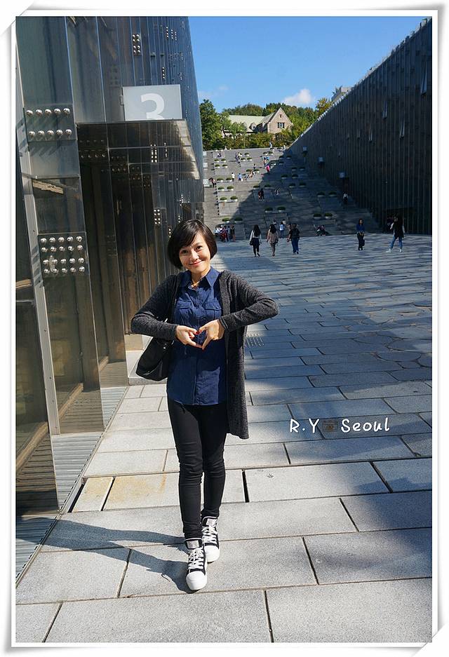 两个不爱逛街的人为什么会来东大门呢……其实我自己也没想明白。大概潜意识里,就觉得东大门是来首尔非去不可的“景点”之一吧。首个目的地是东大门的时尚地标DOOTA。一下车就吓了一跳,不愧为黄金商圈,人气爆棚呀。