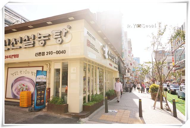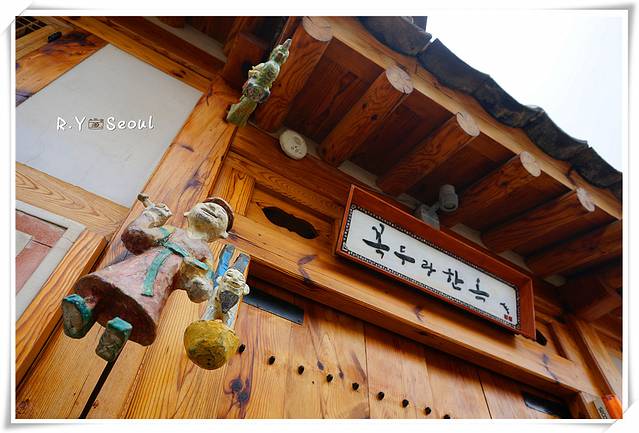 加红加蓝完毕,我们往北村第八景附近出发,准备从那里走阶梯往三清洞散步去。如果想品尝韩国特色餐饮的,倒是可以试试沿途的百年土种参鸡汤,据说非常知名,经常要排队。门面如下图,醒目到让人找不到都难。明明不爱韩食的兔子先生也惺惺作态地发了一回疯……