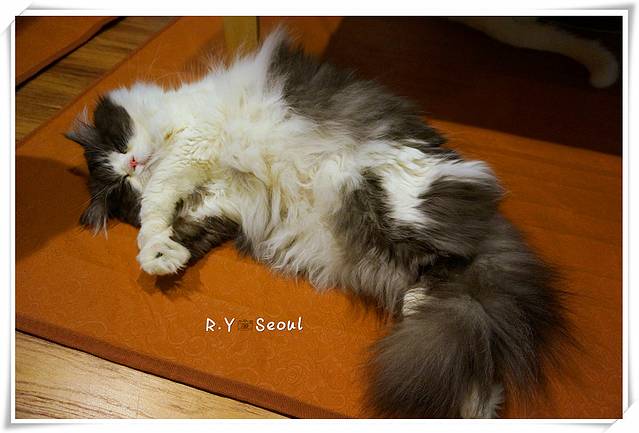 进猫咪咖啡厅要有一系列步骤,首先是在店门口换上拖鞋,店员会用喷剂帮你消毒双手;然后进到店里,在柜台交好8000元入馆费后,可以获赠一杯免费的饮料(薄荷和薰衣草茶都很好喝);店员会给你一个很大的黑色布袋,让你把随身的包包物品都放进去;最后,就可以开始和猫咪亲密接触啦!先来两张咖啡厅的照片吧~猫咪接下来一位一位登场哟~