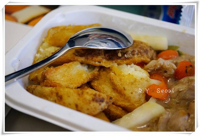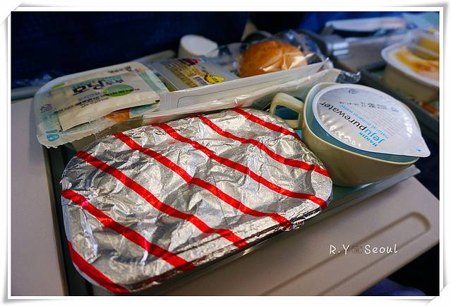 厦门飞首尔,两个半小时就到。基本上吃个饭玩玩IPAD或稍微盹一会儿,也就准备下降了。大韩航空的空姐很美,带着种人工的精致气息(出于礼貌不好意思拍)。飞机餐比较特别,鸡肉土豆,没有米饭,还有一盒口感微妙的豆腐。让我有点点诧异的是,刀叉都是金属的这样安全吗?