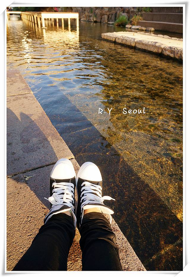 清溪川会出现在我的行程中真心是个意外,虽然之前就听说过清溪川的夜景很美,也翻过几张照片,但我真的真的不知道它就在东大门啊……请原谅我的白目。话说,我们原本是认认真真去找一只鸡胡同吃饭的,但沿着地图路线走(从DOOTA出门左转直走即可),过这座桥的时候我往下面瞟了一眼,咦这景色怎么这么熟悉捏,咦这不是照片上的清溪川吗?!(兔子先生点点点点点)