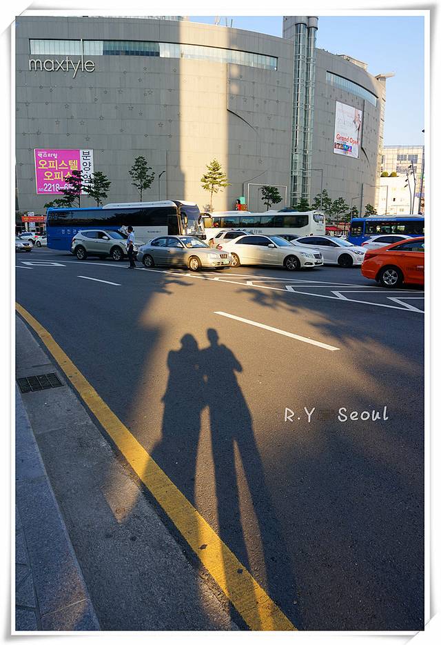 又沿着周边几座商场逛了一圈,也瞅了瞅路边云集的小吃摊,东大门之旅是预料中的颗粒无收。但有爱人陪伴,轻松闲逛的感觉真是无比愉快啊!!眼看夕阳一点点西沉,趁着光线大好,来一张和长腿欧巴的合影吧。